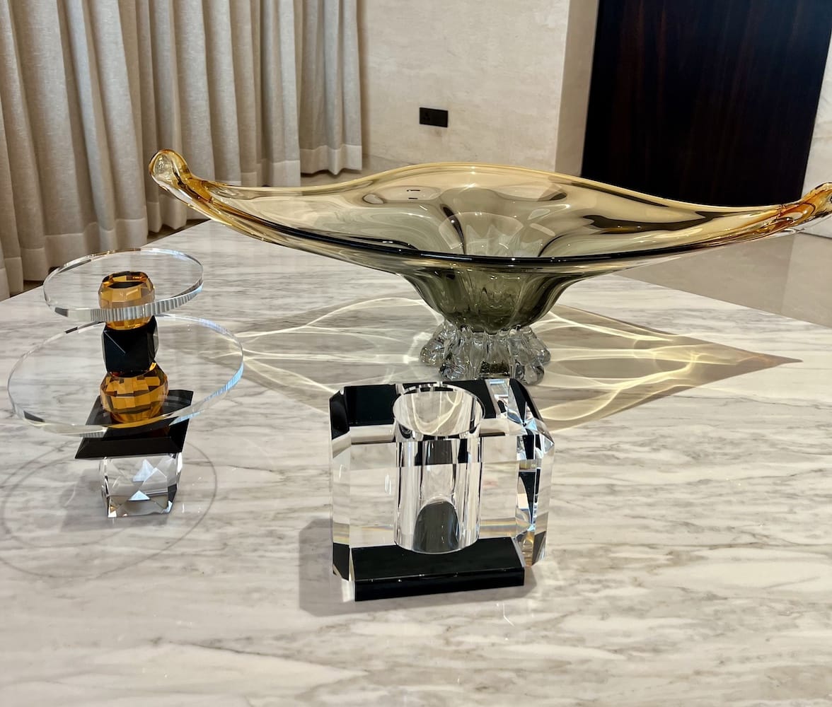 Here to create an impact, and ideal for centre tables , this statement piece with its muted colours blends in with any colour palatte.