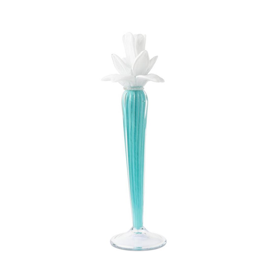 Abhika <br> Dax Flower Candle Holder Turquoise/ White (M)