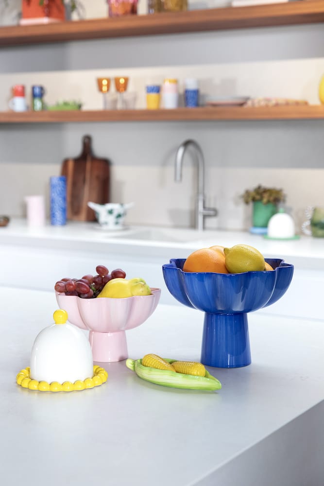 Display your healthy fruits or vegetables in this beautiful bowl. The bowl sun is defined by its stylish shape in combination with the bold blue colour.