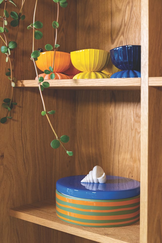 The cheerful coloured material and subtle shell-like shape create an elegant and summery design. This bowl is ideal for serving ice cream, storing small items or simply as decoration.