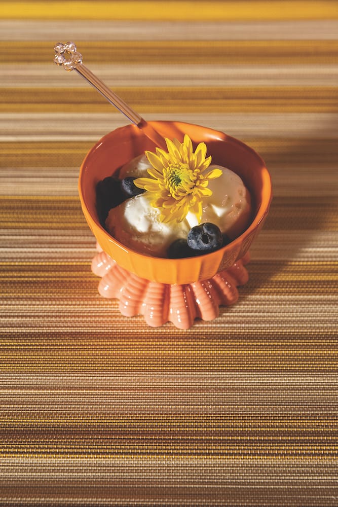 The cheerful coloured material and subtle shell-like shape create an elegant and summery design. This bowl is ideal for serving ice cream, storing small items or simply as decoration.