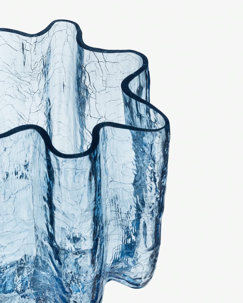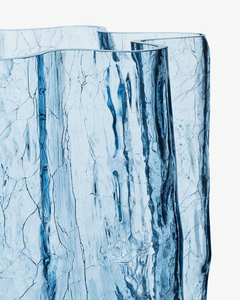 The Crackle series is a tribute to cracks, beautifully preserved in glass. The blue pearl vase has a sculptural, expressive exterior that is created using an old craft technique, where the hot glass is dipped in ice-cold water. Crackle is mouth-blown in Kosta and designed by Åsa Jungnelius.