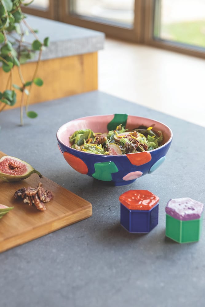 The crafty bowl was designed to bring colour to your dining table. The bowl incorporates overlapping abstract shapes in contrasting colours to create a stunning table setting.