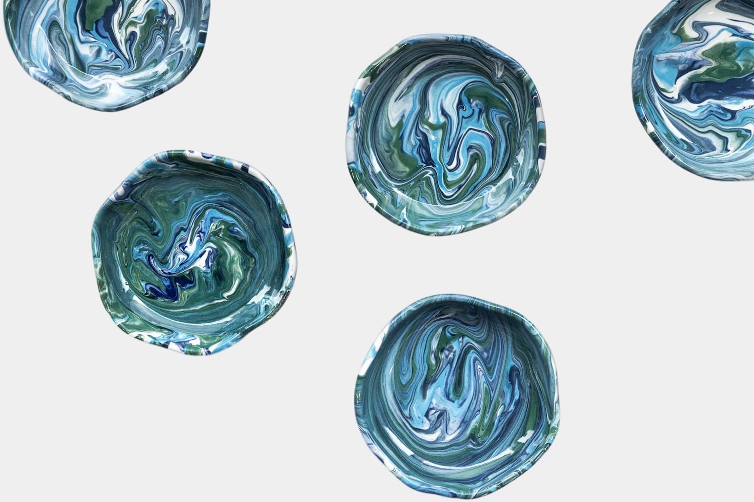 The Abstracto mini plates are handmade & designed in France. The natural pigments used include turquoise and green pigments. Its beauty is its round shape with imperfect edges. Perfect for serving an aperitif, a dessert, to use as a decorative object or to place your jewelry.