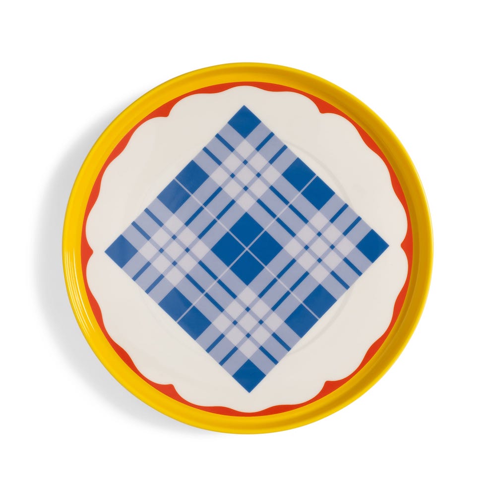 The Plate daydream, designed by Nynke Tynagel for our sub-label Buro Berger, was inspired by nostalgic plates and paper napkins that Nynke envisioned while daydreaming. These contemporary plates use graphic shapes and silhouettes to create visual illusions that captivate the eye. This colourful set of dinner plates blends old-fashioned charm with modern design through optical illusion.