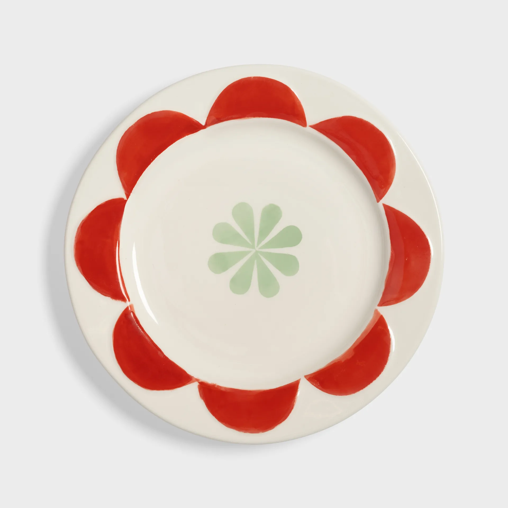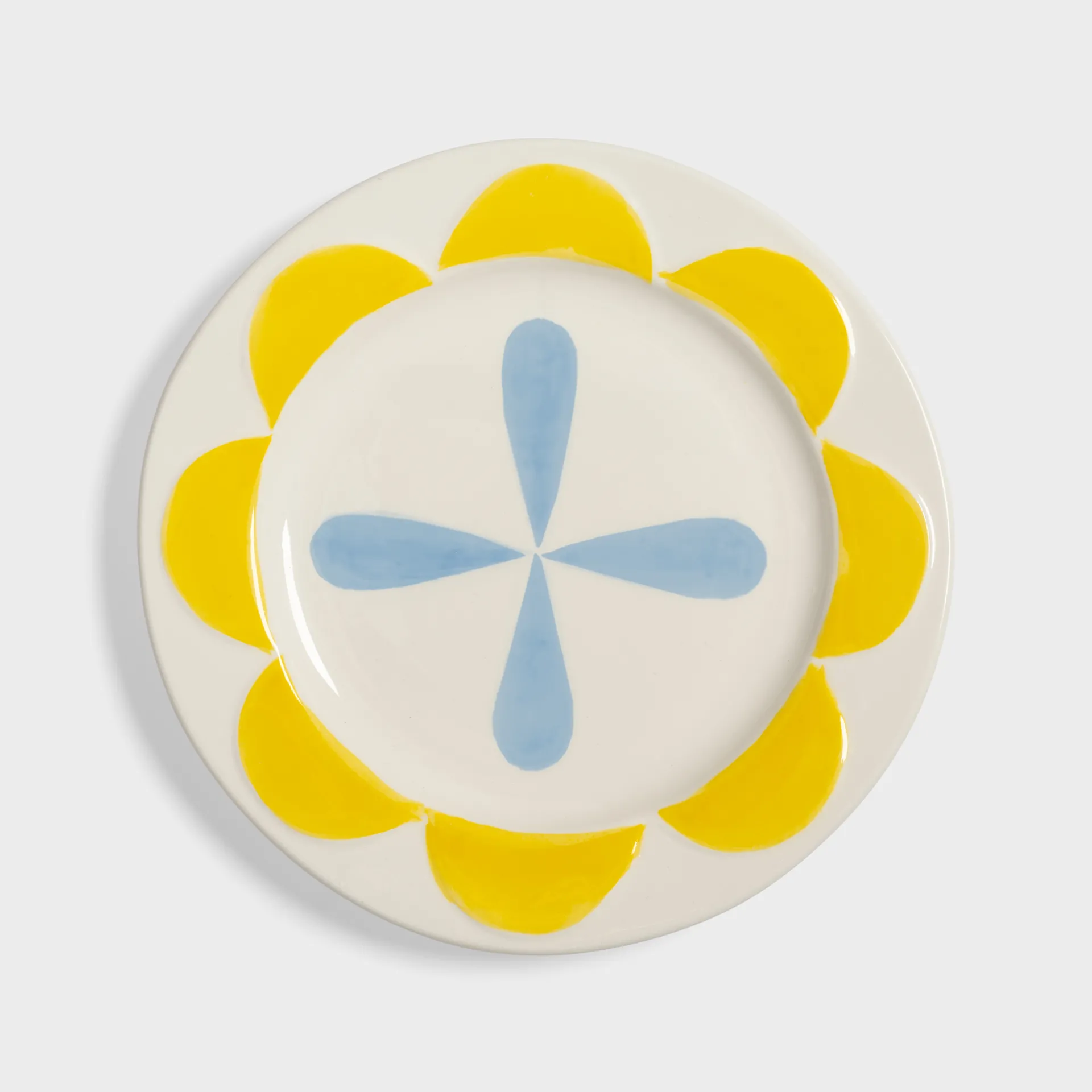This set of four dessert plates is a stunning addition to any table, combining functionality with a touch of folk-inspired design along the rim. Crafted from high-quality, durable porcelain, the plates radiate both elegance and strength, making them perfect for everyday use as well as special occasions. The abstract painted rim adds a cheerful note to the set, enhancing the overall presentation. What makes these plates truly special is the pattern that emerges when they are combined with other pieces from the same collection. Each plate features a unique design that, when paired with the other plates and bowls, forms a harmonious folk pattern, creating a visually appealing set on the table.