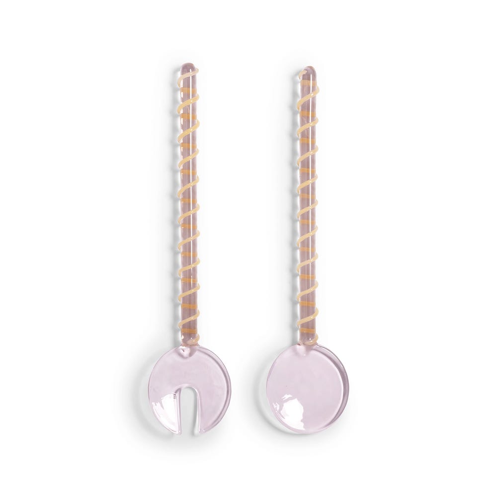 Toss your salads in style with this set of salad servers made from solid-colored borosilicate glass. The hand-placed spiral adds a unique touch to each piece, making every set one-of-a-kind. Wrapped in a gift box, they’re the perfect addition to your summer gatherings or a thoughtful gift for someone special.