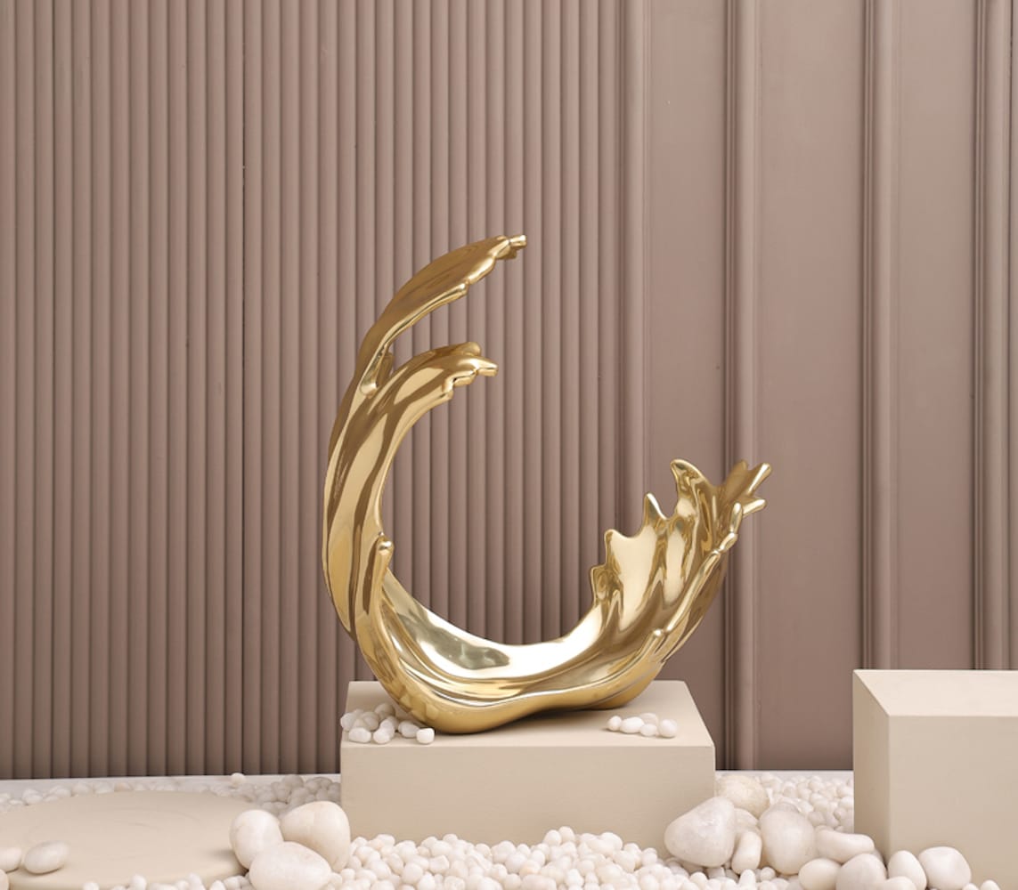 Featuring an international, modern design, this decorative piece stands out with its edgy and unique character. Its sculptural form and premium metallic finish add a bold touch of sophistication, making it a perfect statement accent for a contemporary home.