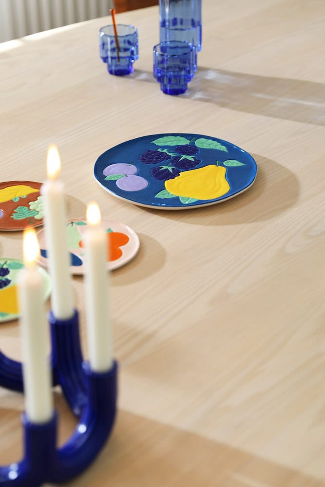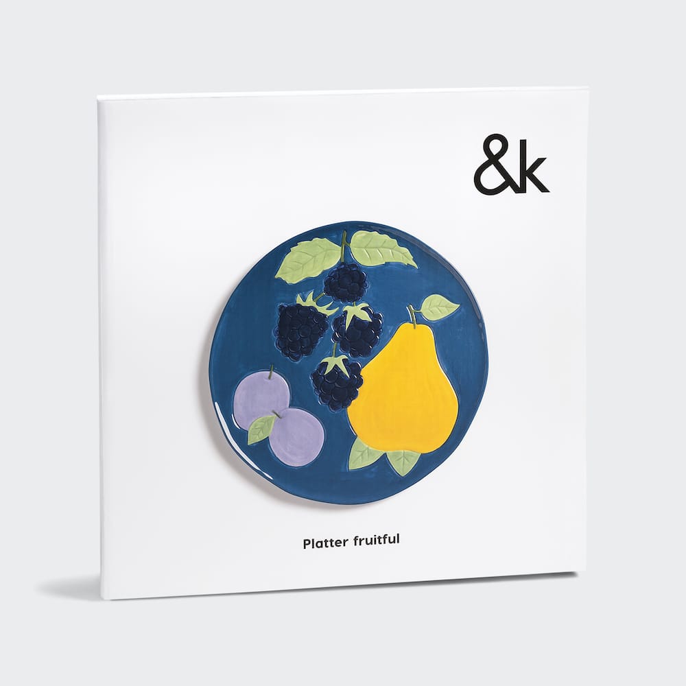 Impress your guests with our fruitful platter. Display your favourite pie or or other small bites against a background of a vintage-inspired collage of fruit.