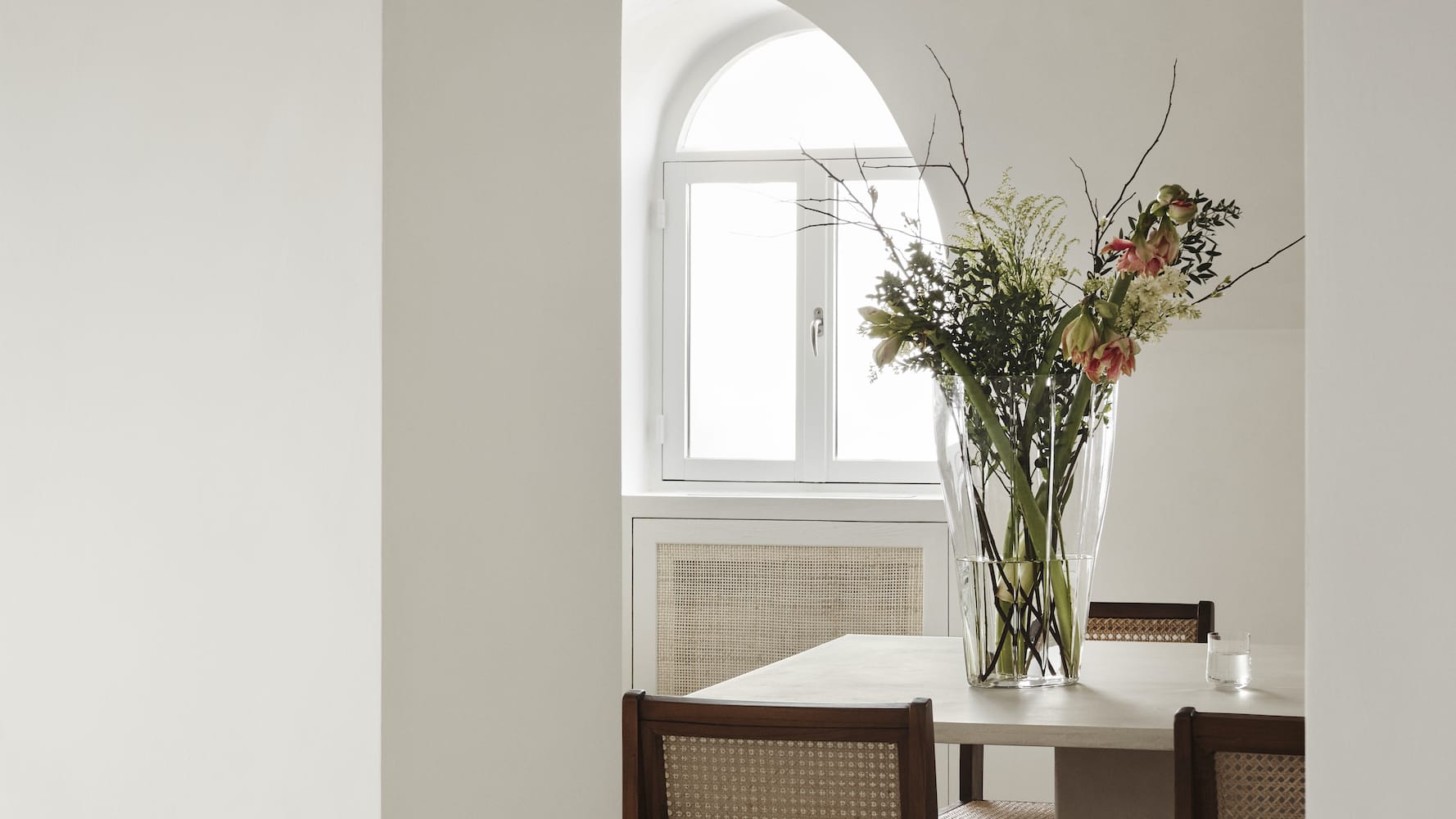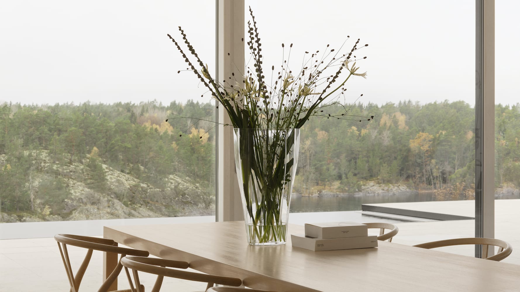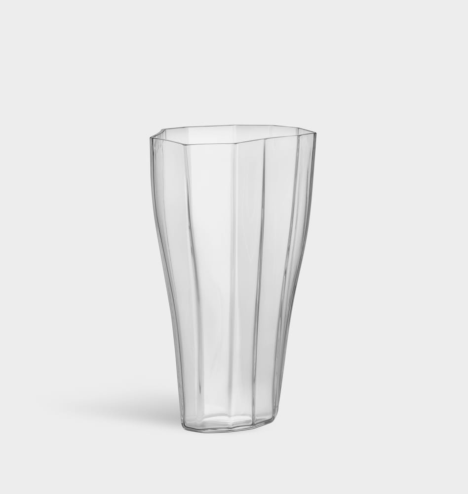 With Reed, Monica Förster shows how to create a sense of organic movement by emphasizing folds. A quiet swaying in the hard glass. The vase is blown in clear glass. The medium-size Reed is suitable for hand-picked florals and cut flowers. A Red Dot Product Design winner, the series was introduced in 2023.